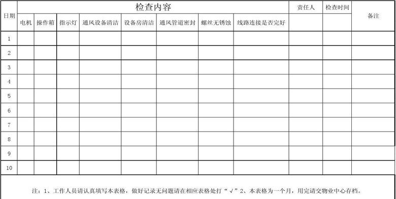 2、廢氣處理設(shè)備日常檢查表(設(shè)備運(yùn)行檢查表)